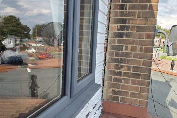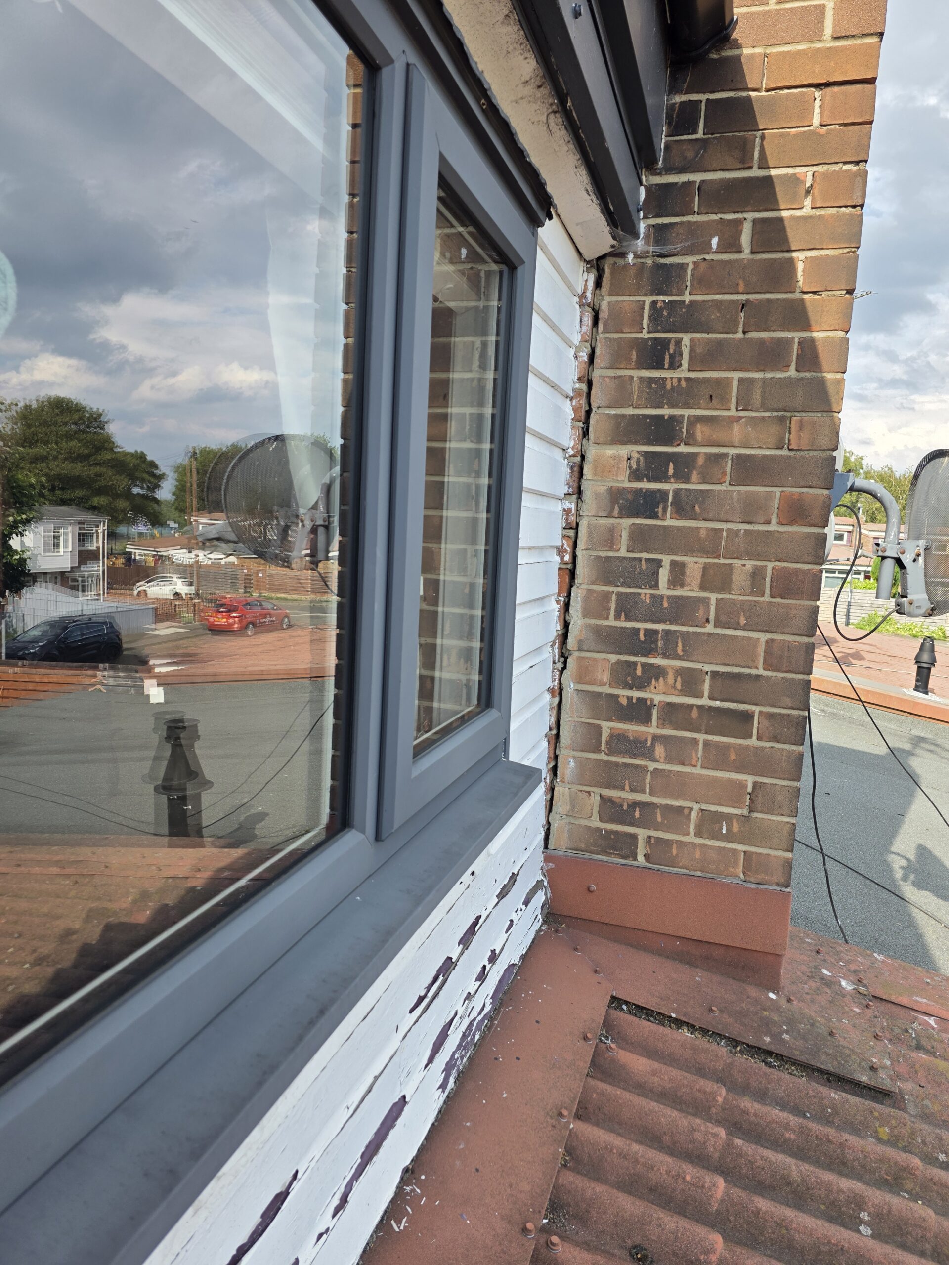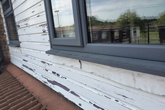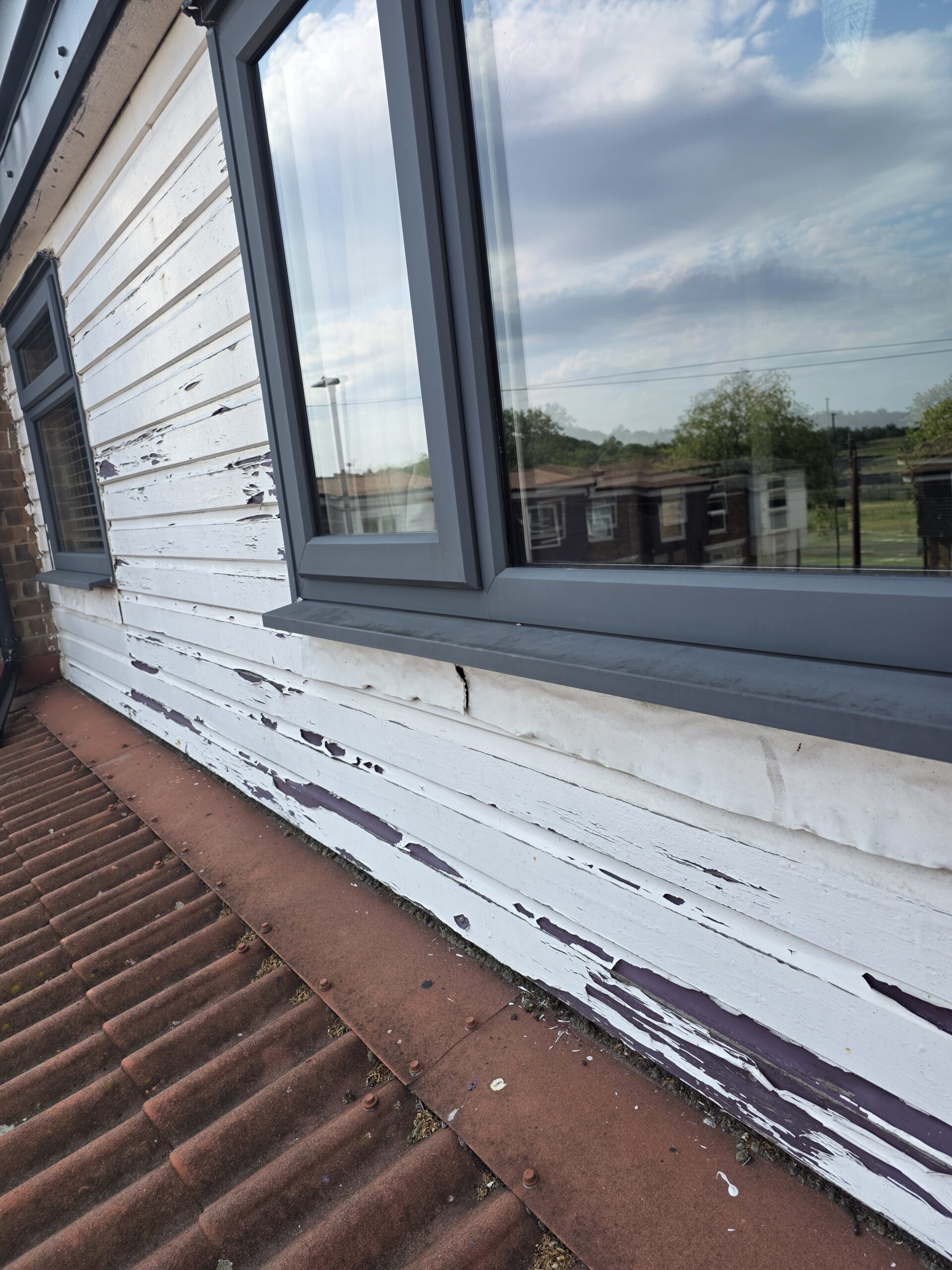 This customer’s old, peeling wood siding was in need of a serious update. We removed the peeling, old wood and replaced it with durable, modern grey plastic cladding. The new cladding not only looks fantastic but also provides a long-lasting, low-maintenance solution that will protect the home for years to come.