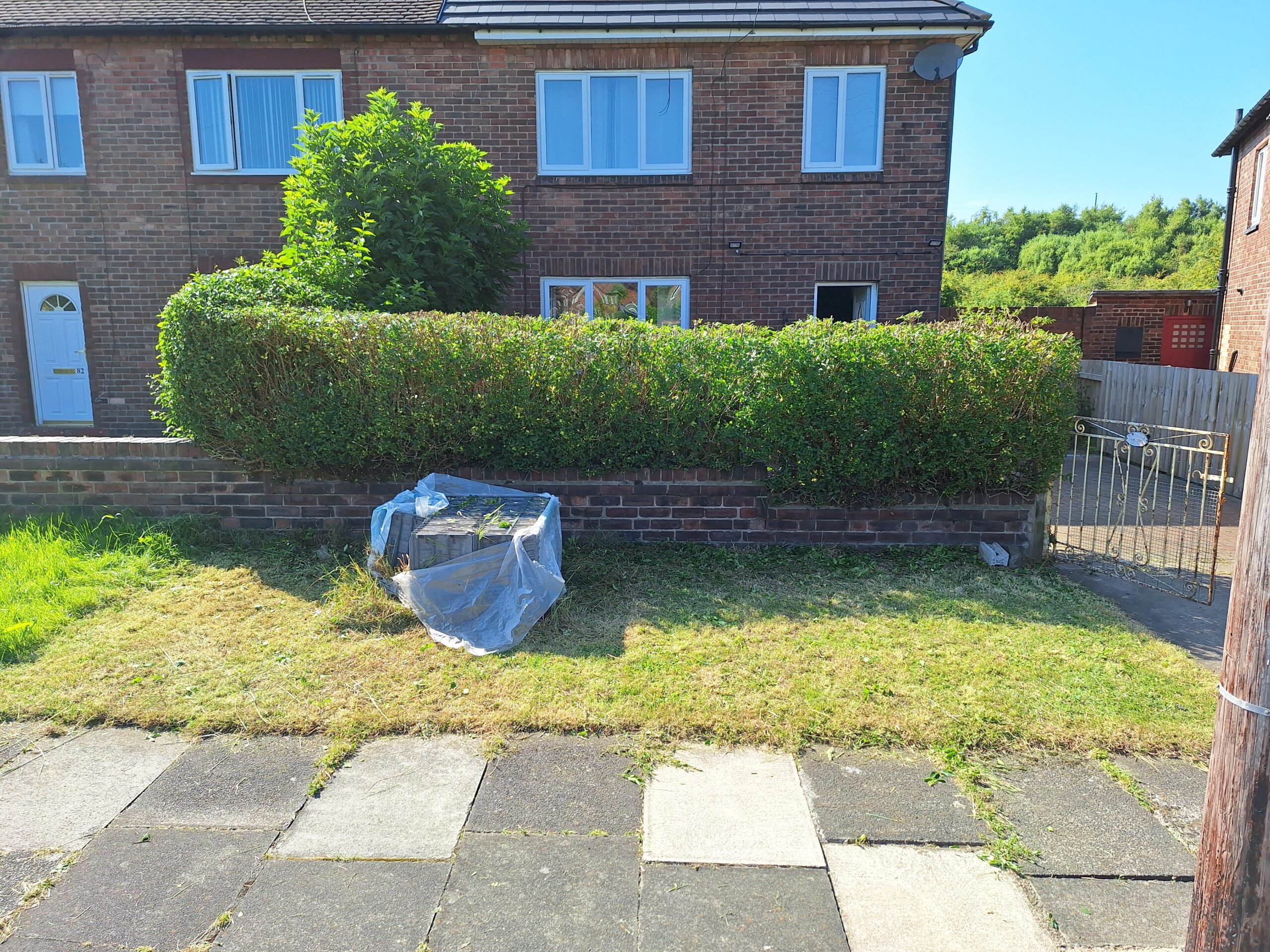 This front yard had been left a little too long and hand gotten past the point of it’s owner being able to take care of it, so they called us in to help. We began by mowing the worth of the weeds on the drive. After bagging them up we then went in between the bricks to dig out as much of the remaining weeds as we could. Once that was done we decided to tackle the hedges, taking out hedge trimmer to them. It made quick work of the overgrown shrubbery and brought it right back to a reasonable condition, much easier on the eyes. Then all that was left was to cut back the plants growing in the bed beneath the hedges and tidy up.