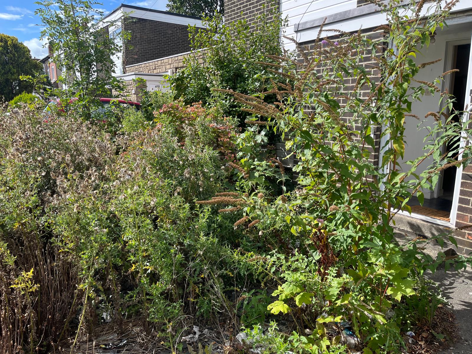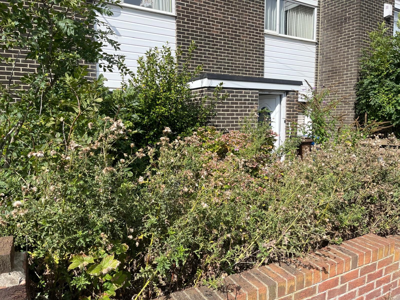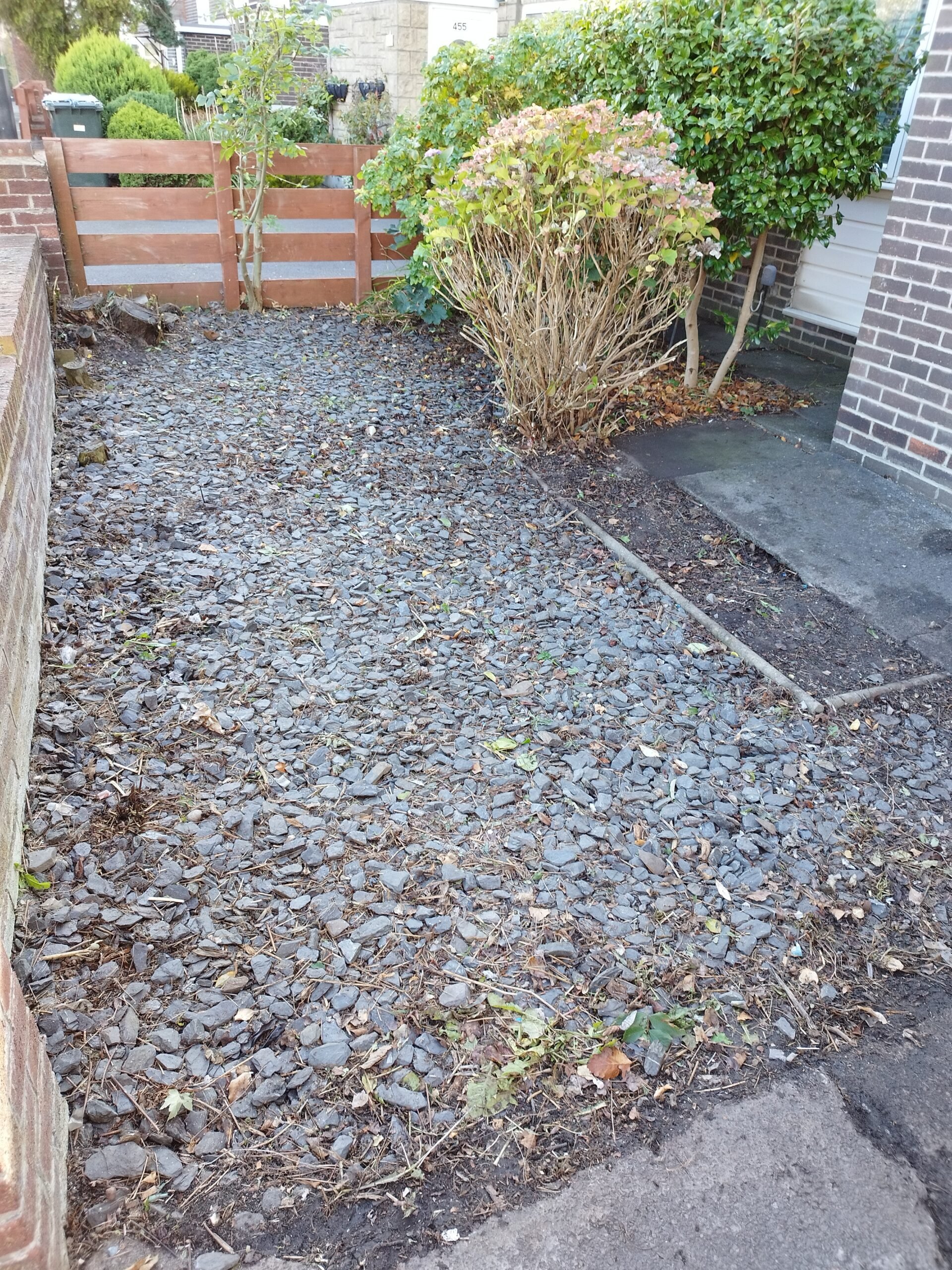 This project was a rapid and comprehensive front garden clear-up where the space had become severely overgrown with weeds and untamed shrubs, and a large, dead bush dominated the main bed. Our team executed a full clearance by cutting down and removing all excessive, unruly growth, completely taking out the dead bush, and thoroughly clearing all leaf litter and debris from the pathways and existing slate beds to restore definition and neatness. The result is a total transformation of the property’s entrance, converting a cluttered, neglected area into a clean, sharp, and manageable front garden that significantly boosts the property’s curb appeal.
